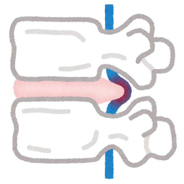 椎間板ヘルニアとは脊椎と脊椎の間にある衝撃を緩和させるクッションのような役割を果たす椎間板という組織の中央にある髄核というものがなんらかの原因で本来の位置からズレた状態のことを言います。