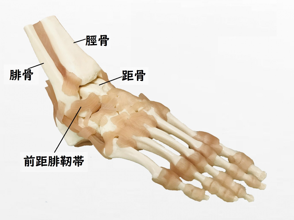 前距腓靭帯が損傷すると足関節を動かす時に距骨を正常な位置に留める力に障害が起きてしまうため足関節の安定性に大きな影響を及ぼします。